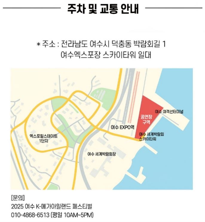 여수 밤바다의 감성 속에서 잊지 못할 추억을 만들고 싶다면, 오늘 하루만은 시간 내어 방문해보세요. 여름의 끝자락을 뜨겁게 채워줄 단 하나의 콘서트가 여러분을 기다립니다.